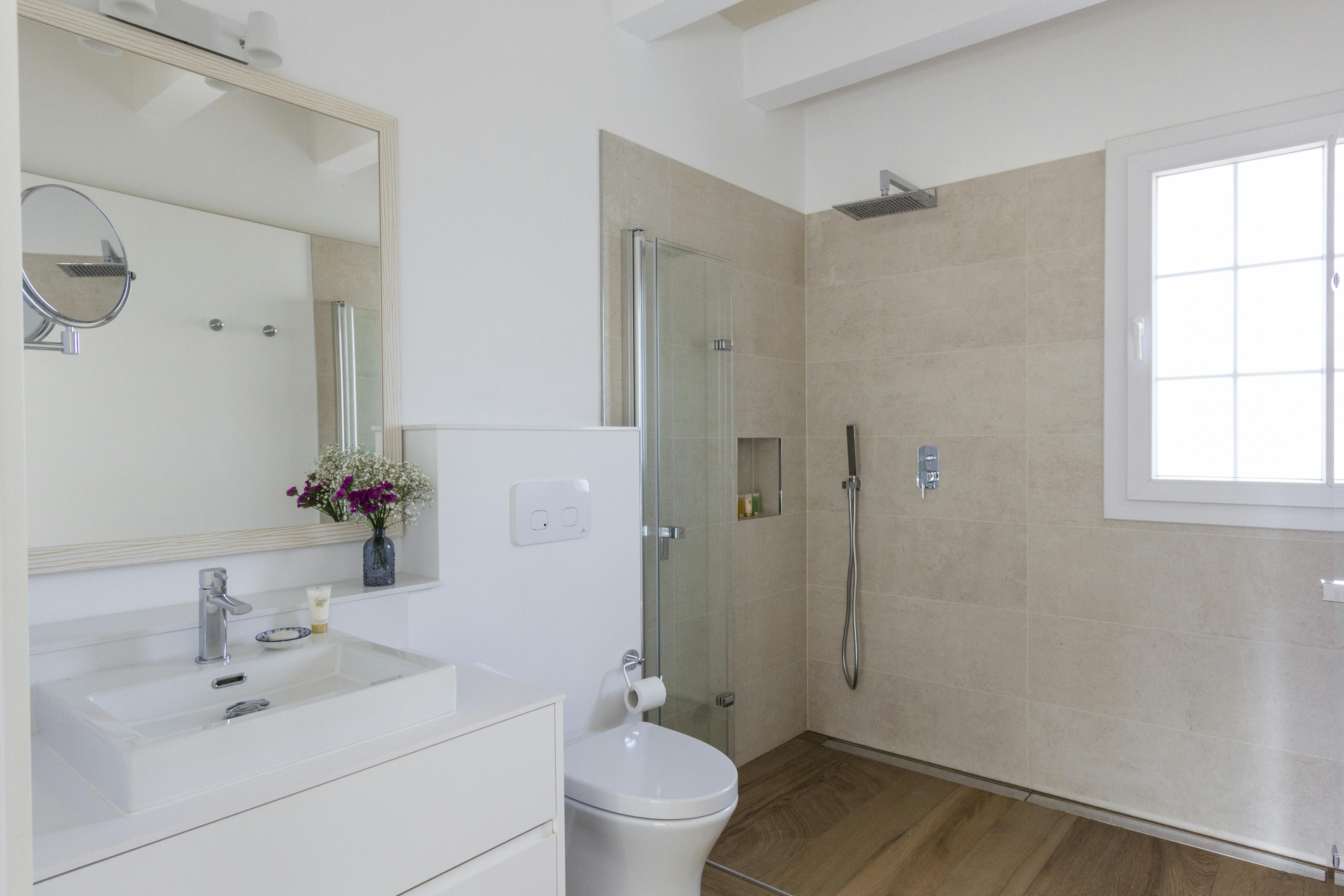 Top quality finishings distinguish this flashy apartment with wooden beams in its double bedroom, two bathroom, living room, dining room and fully equipped kitchen,fireplace, terrace and private BBQ. There is an extra pull out sofabed. Views over the landscape and the house.
