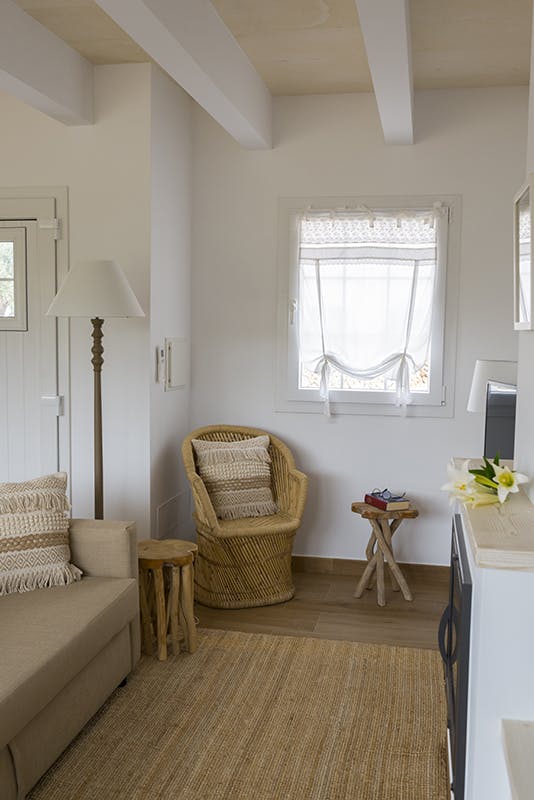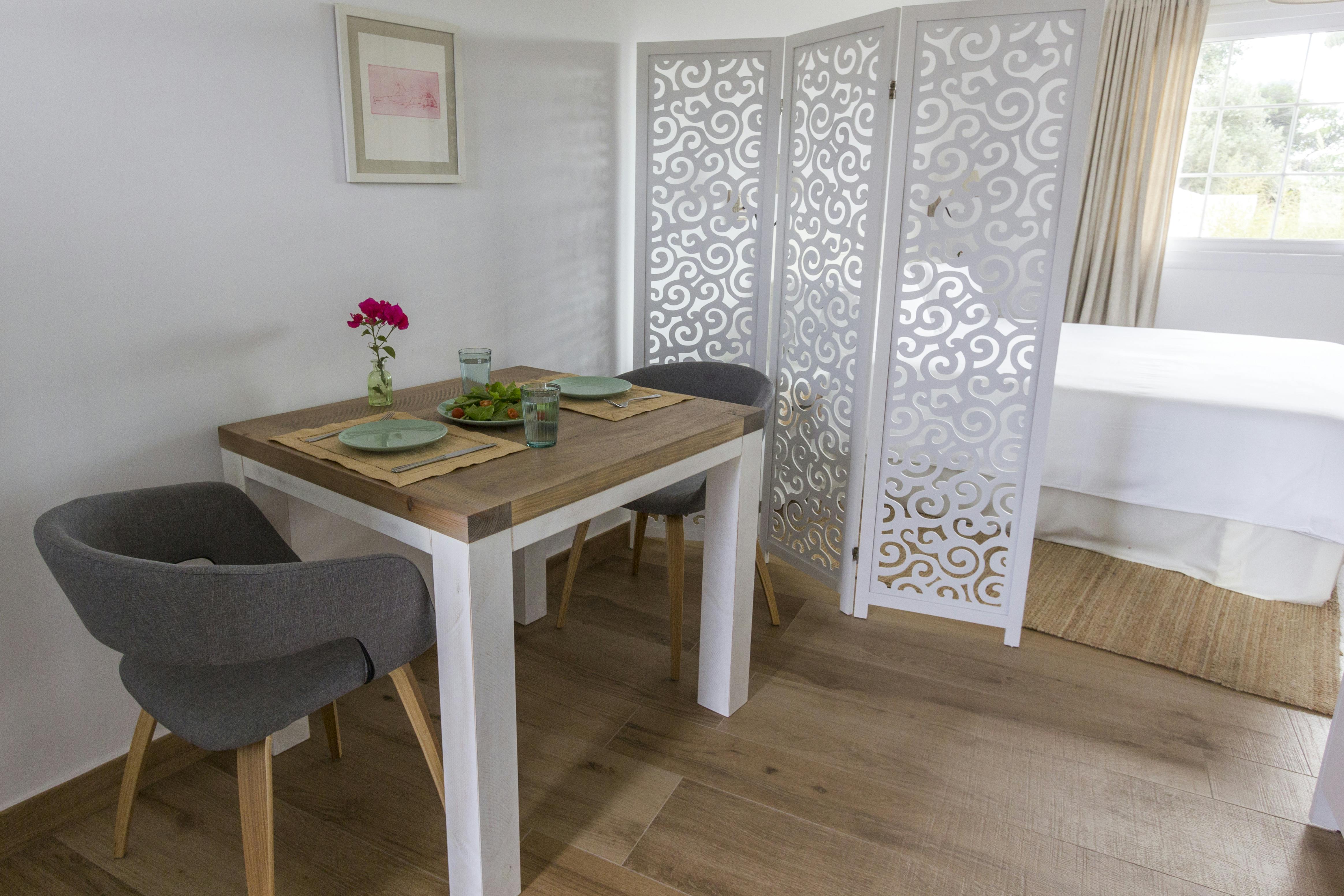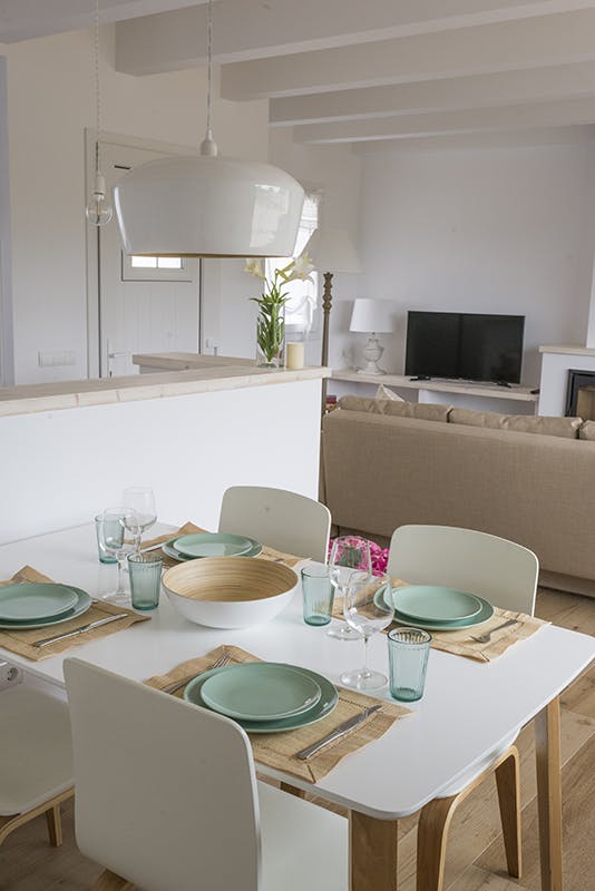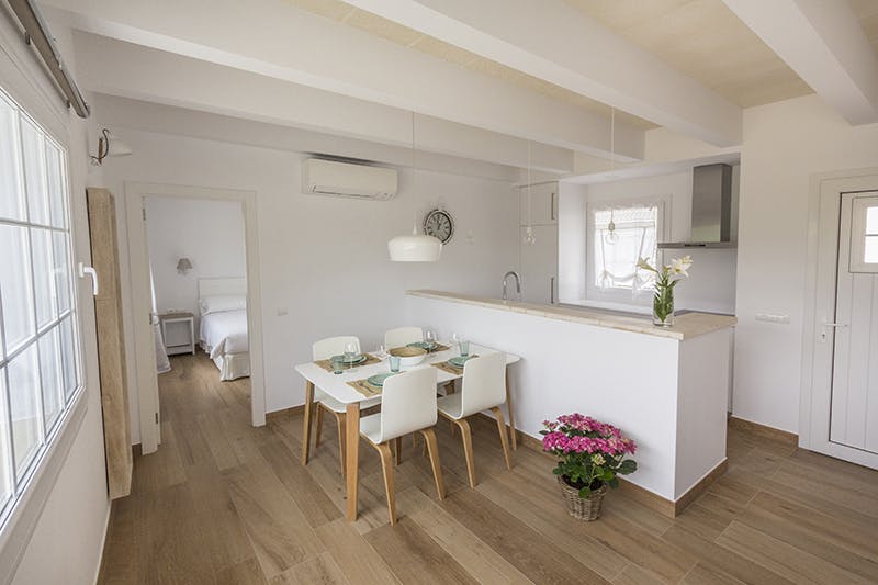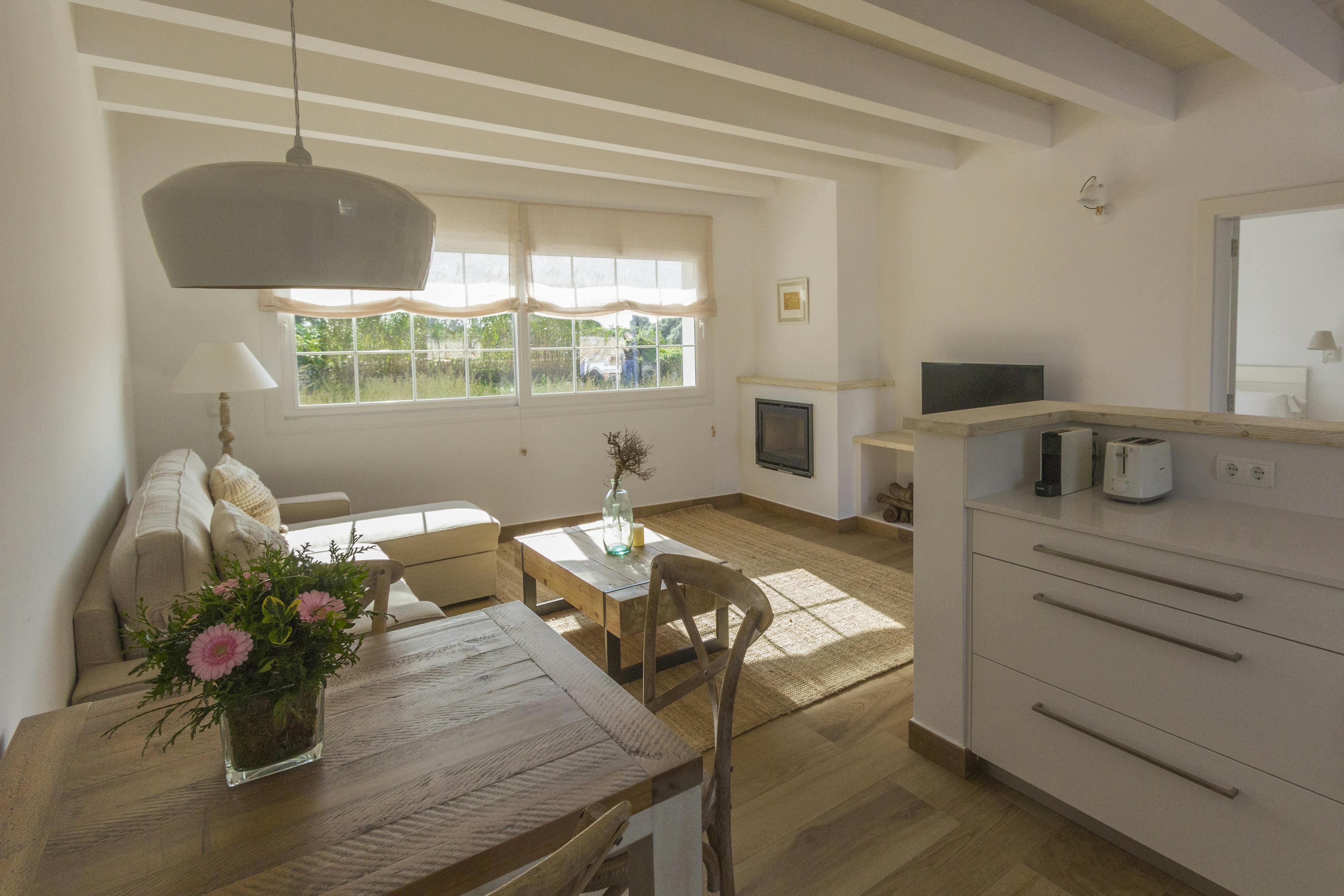 Top quality finishings distinguish this flashy apartment with its wooden beamsin its single bedroom, bathroom, small dining area and fully equipped kitchen,fireplace, large terrace and private BBQ. Views over the landscape and the house.
